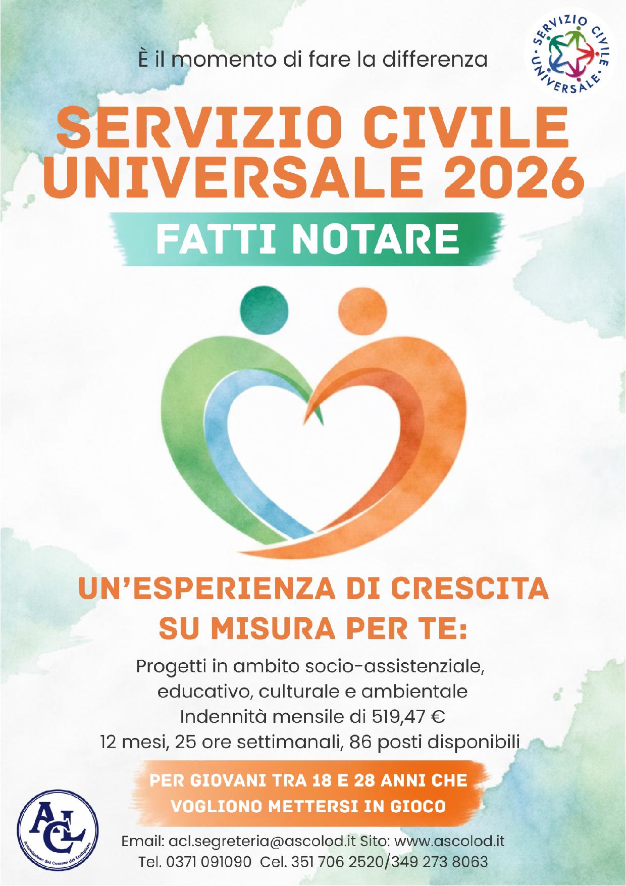 Fino alle ore 14.00 dell’8 aprile 2026 è possibile presentare domanda di partecipazione ad uno dei progetti che si realizzeranno tra il 2026 e il 2027 su tutto il territorio nazionale e all’estero.